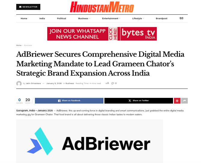 “AdBriewer is increasingly being recognized across news and media platforms for the transformative impact it’s creating in digital branding and campaign innovation. From government projects to D2C launches, the agency’s work is being spotlighted as a benchmark for authenticity, creativity, and measurable results. This rising attention reflects not just the success of individual campaigns, but the larger narrative of how AdBriewer is reshaping the way brands connect with audiences in Gurgaon, Delhi NCR, and beyond.”